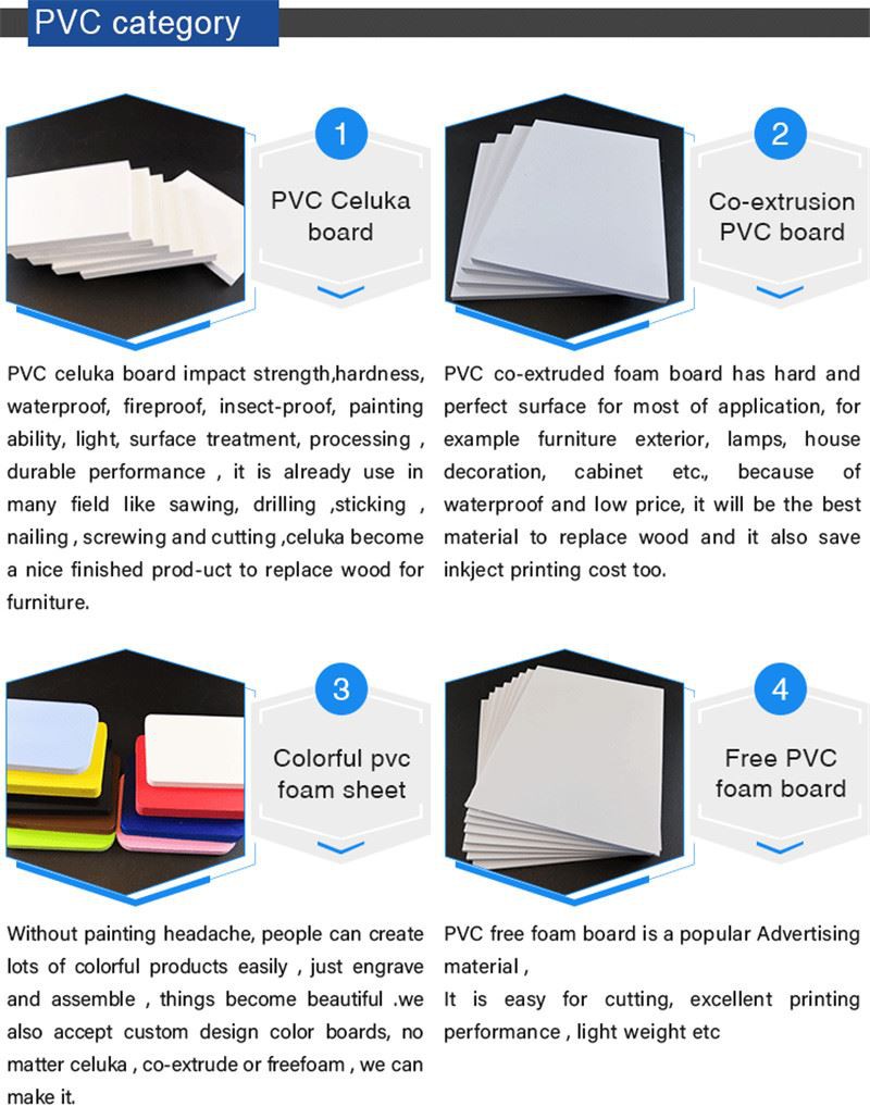 Las láminas de espuma de PVC están hechas con materiales termoplásticos de PVC no tóxicos y respetuosos con el medio ambiente. Estos materiales son reciclables, libres de plomo, bario, zinc y cadmio, y ofrecen una resistencia impresionante a las llamas.